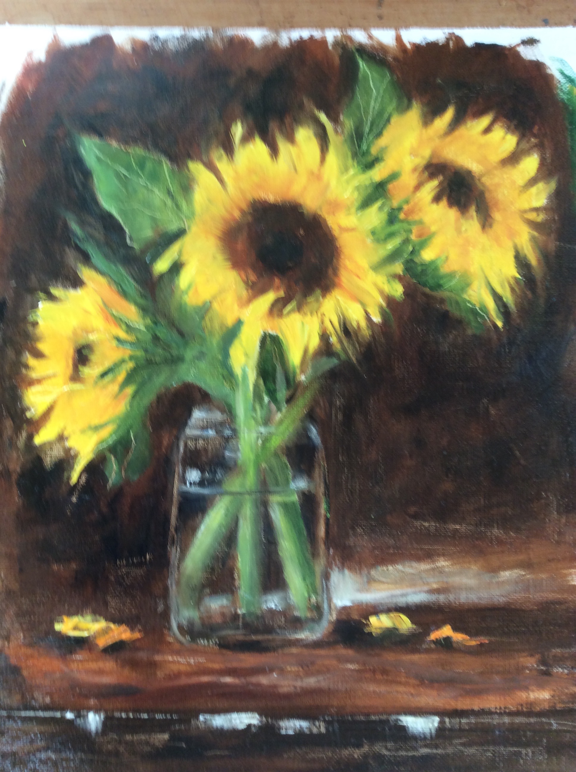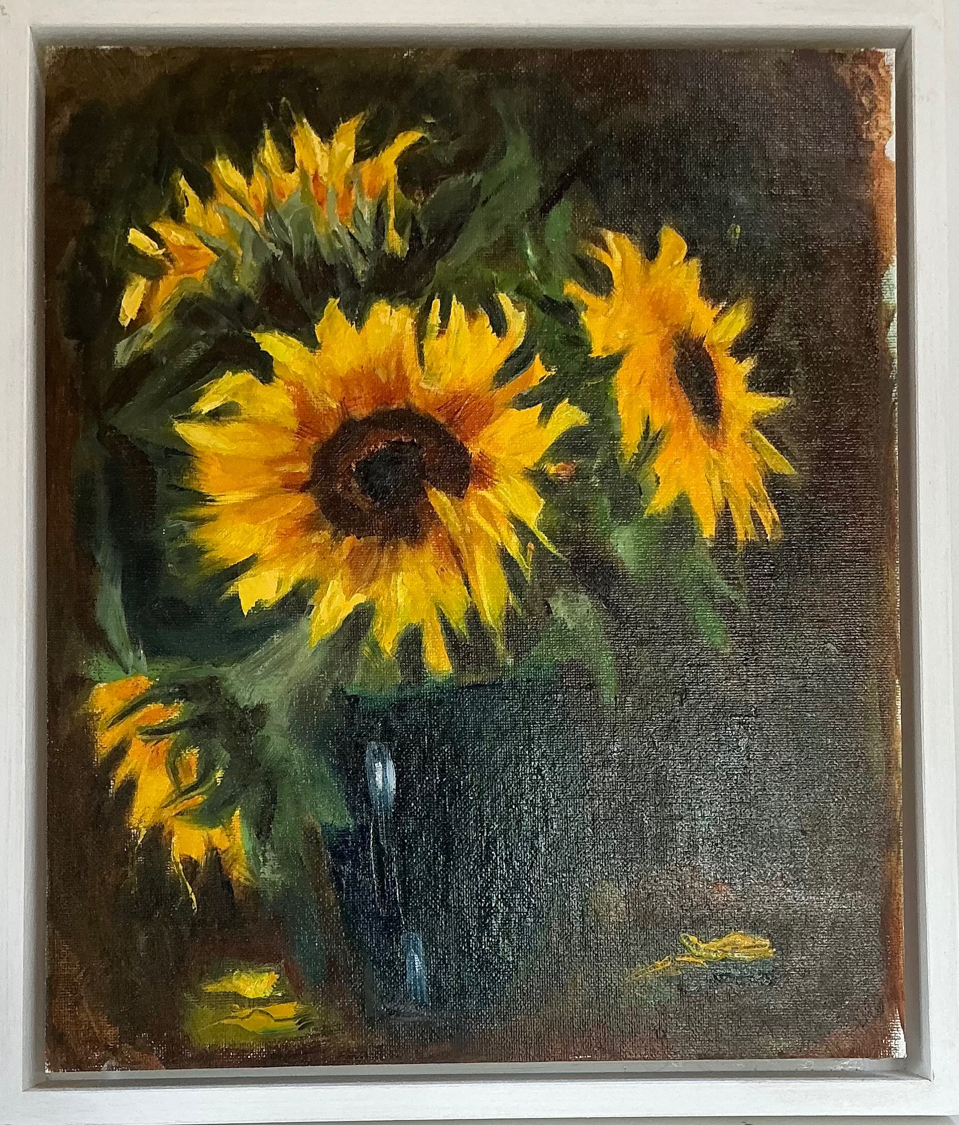 Sunflowwers in jam jar . Oil on canvas. 2024
